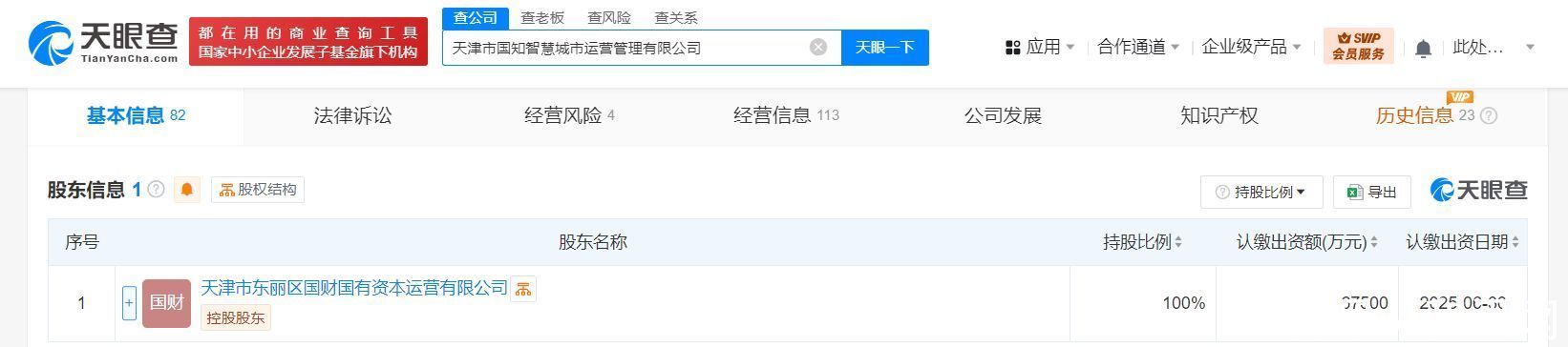 天津国知智慧城市运营管理公司增资至6.75亿 增幅122%